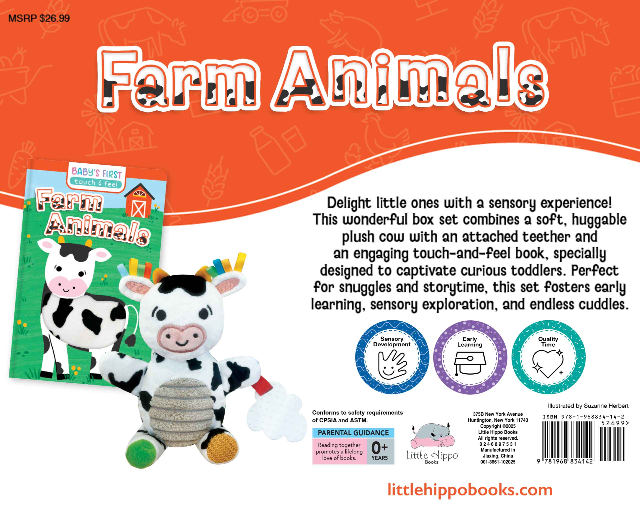 • ❤️ Set includes touch-and-feel book, sensory plush cow and teether.