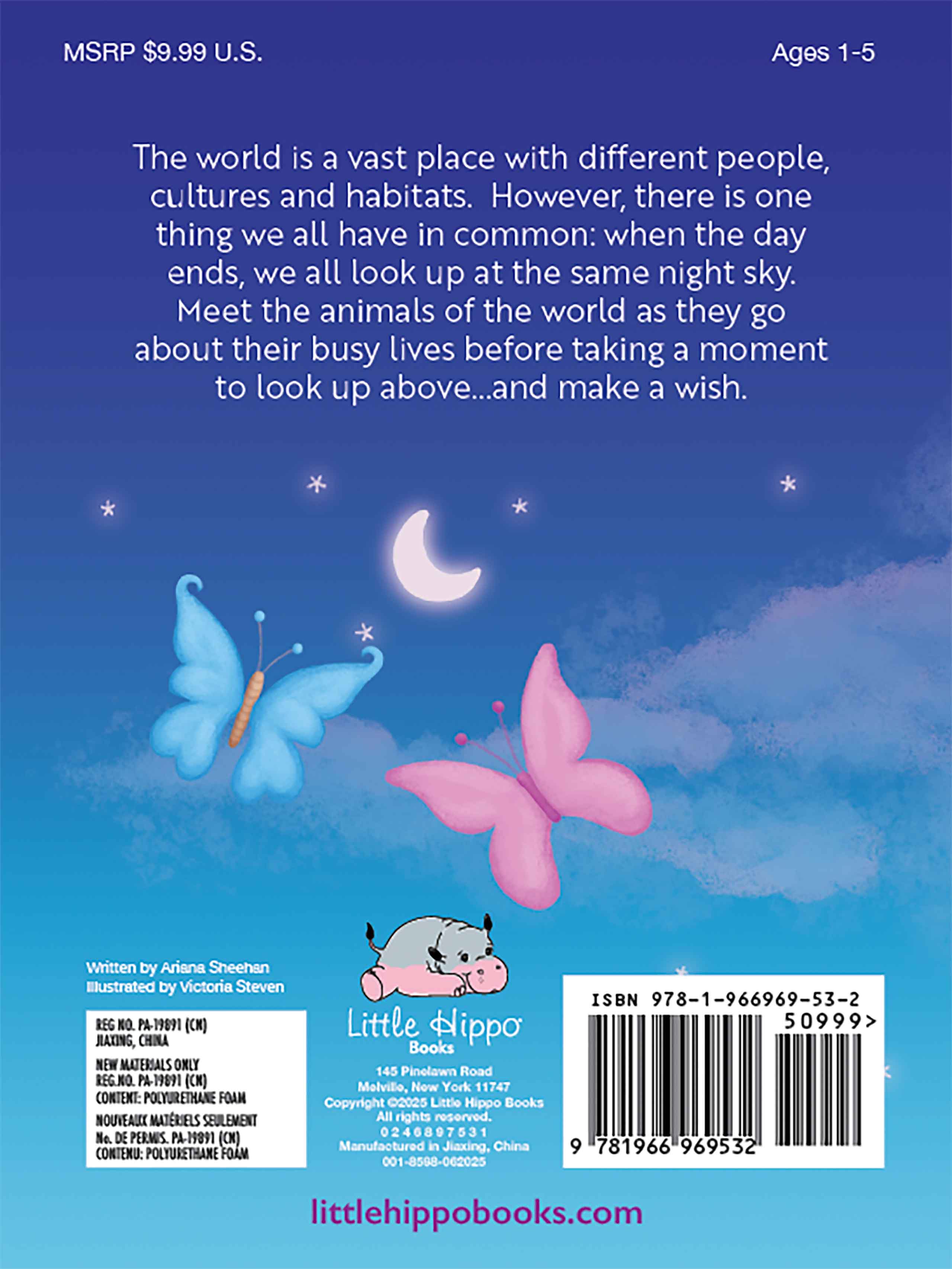 The world is full of diverse people, cultures, and habitats—but at the end of the day, we all share one beautiful thing in common: the night sky. Little readers can follow along on a global journey to meet animals from all around the world, as they go about their busy lives and pause to look up at the stars and make a wish.
