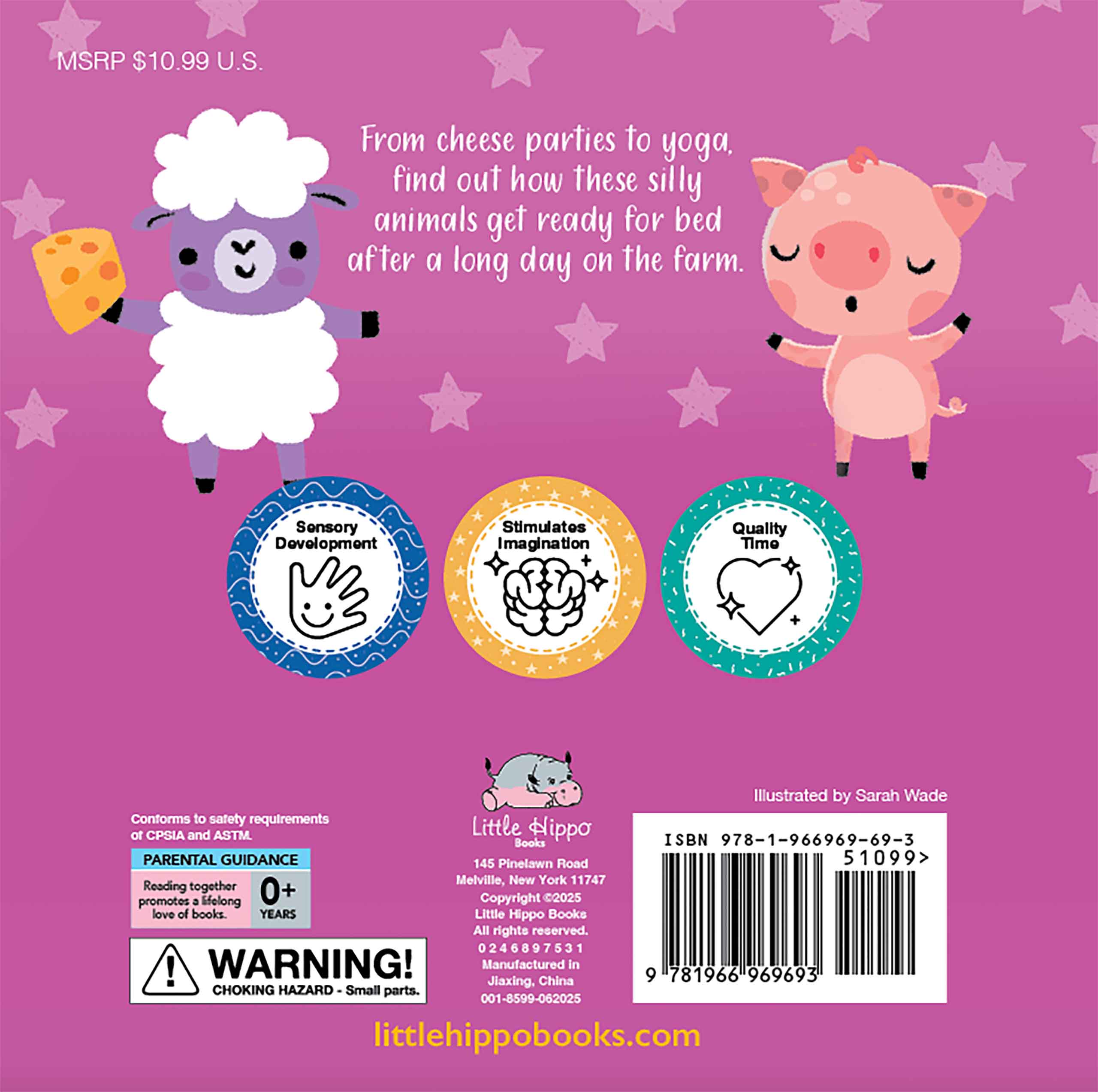From cheese parties to yoga, find out how these silly animals get ready for bed after a long day on the farm. Children will have fun reading about the animalss bedtime routines while exploring various sensory touch-and-feel elements.