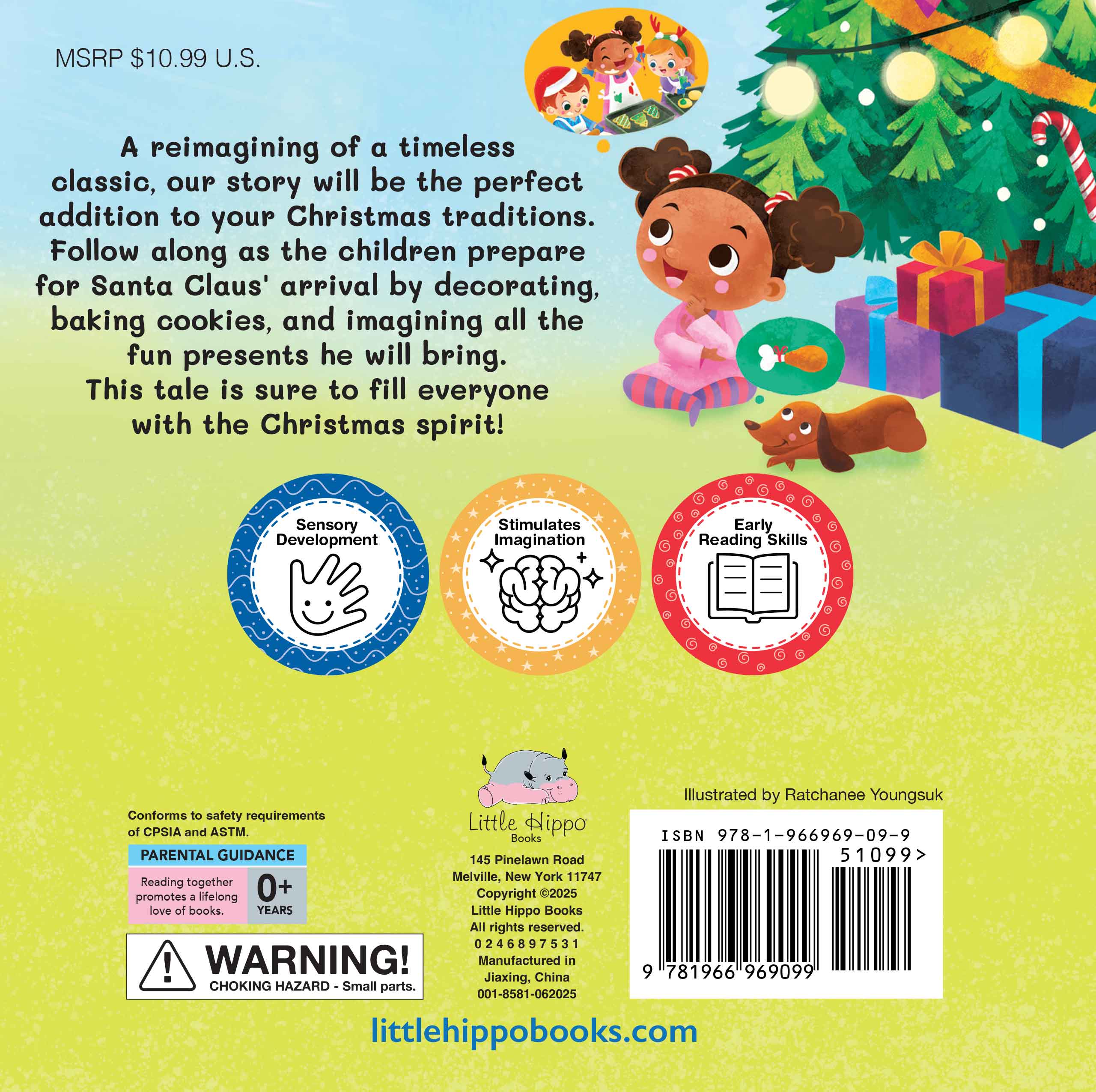 A reimagining of a timeless classic, this story will be the perfect addition to your Christmas traditions. Follow along as the children prepare for Santa Claus' arrival by decorating, baking cookies, and imagining all the fun presents he will bring. This tale is sure to fill everyone with the Christmas spirit and will quickly become a holiday favorite!