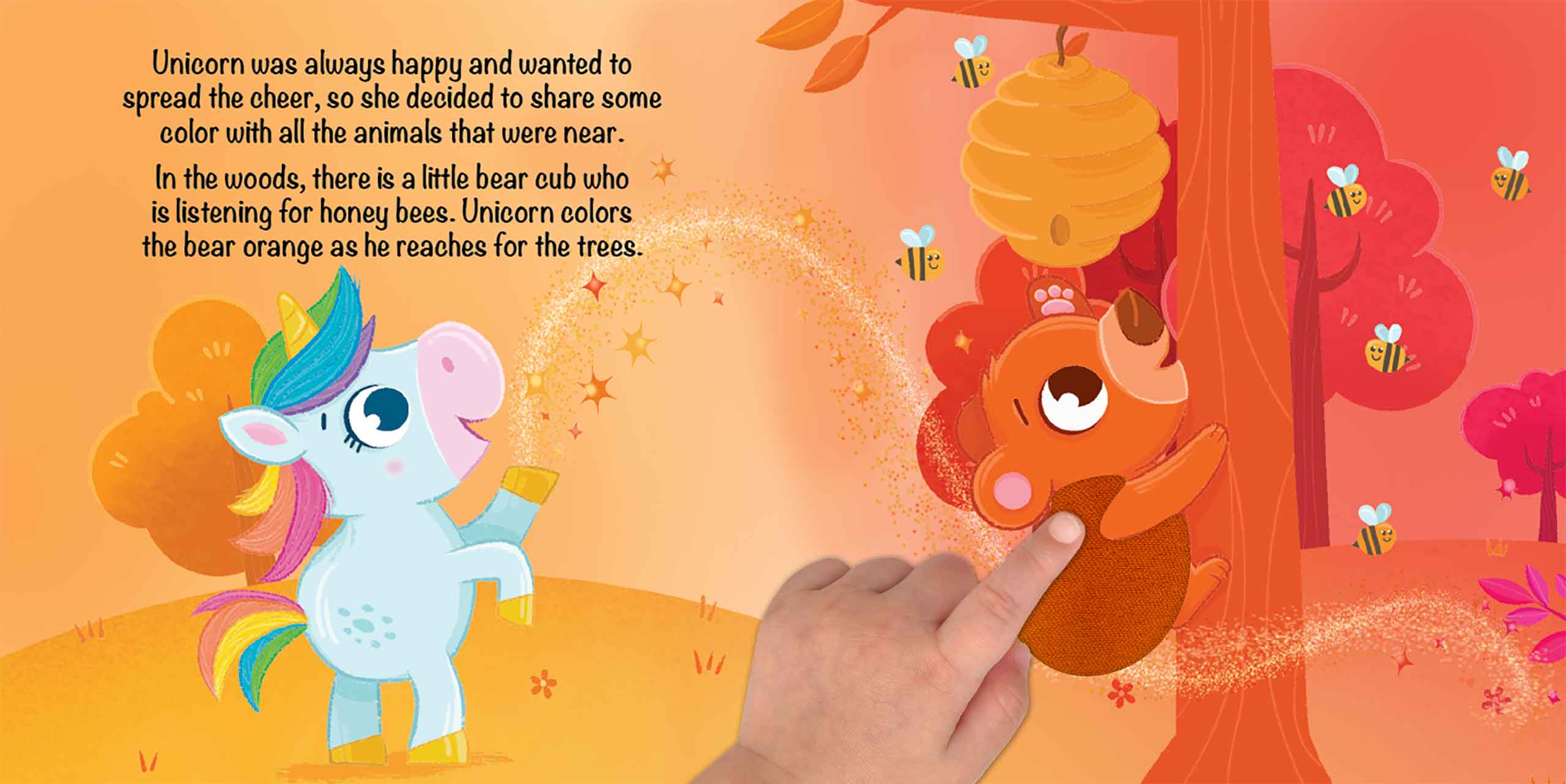Follow Little Unicorn as she brightens the animals’ days by spreading a rainbow of colors throughout the land. Children will have fun reading about Little Unicorn’s adventure and learning colors while exploring various sensory touch-and-feel elements.